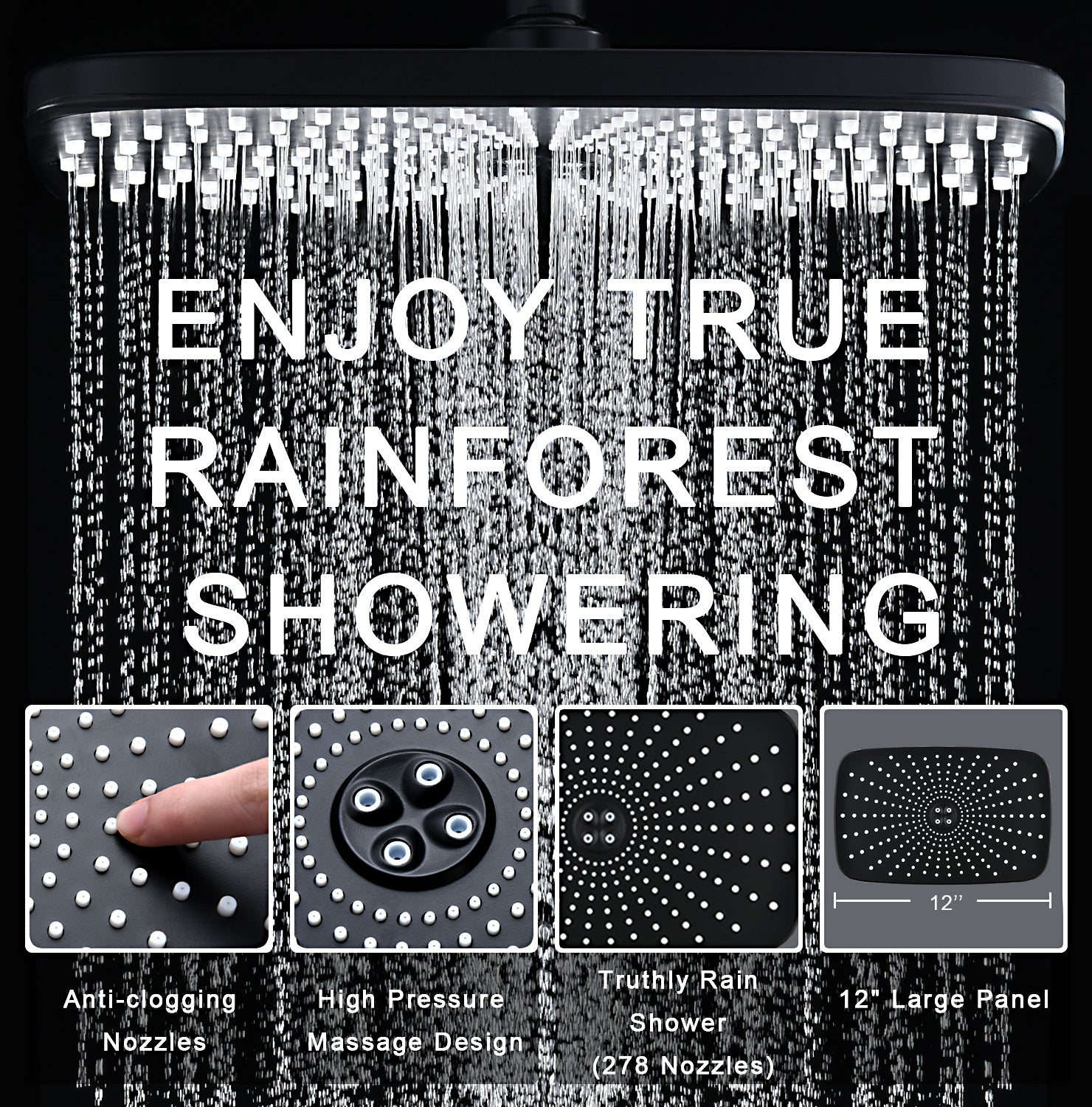 • Rainforest experience in home, our high pressure shower heads has 278 spray nozzles committed to provide smooth rain feeling. You can enjoy a truly rain showering experience which leaves you a feeling of relaxing and comfortable