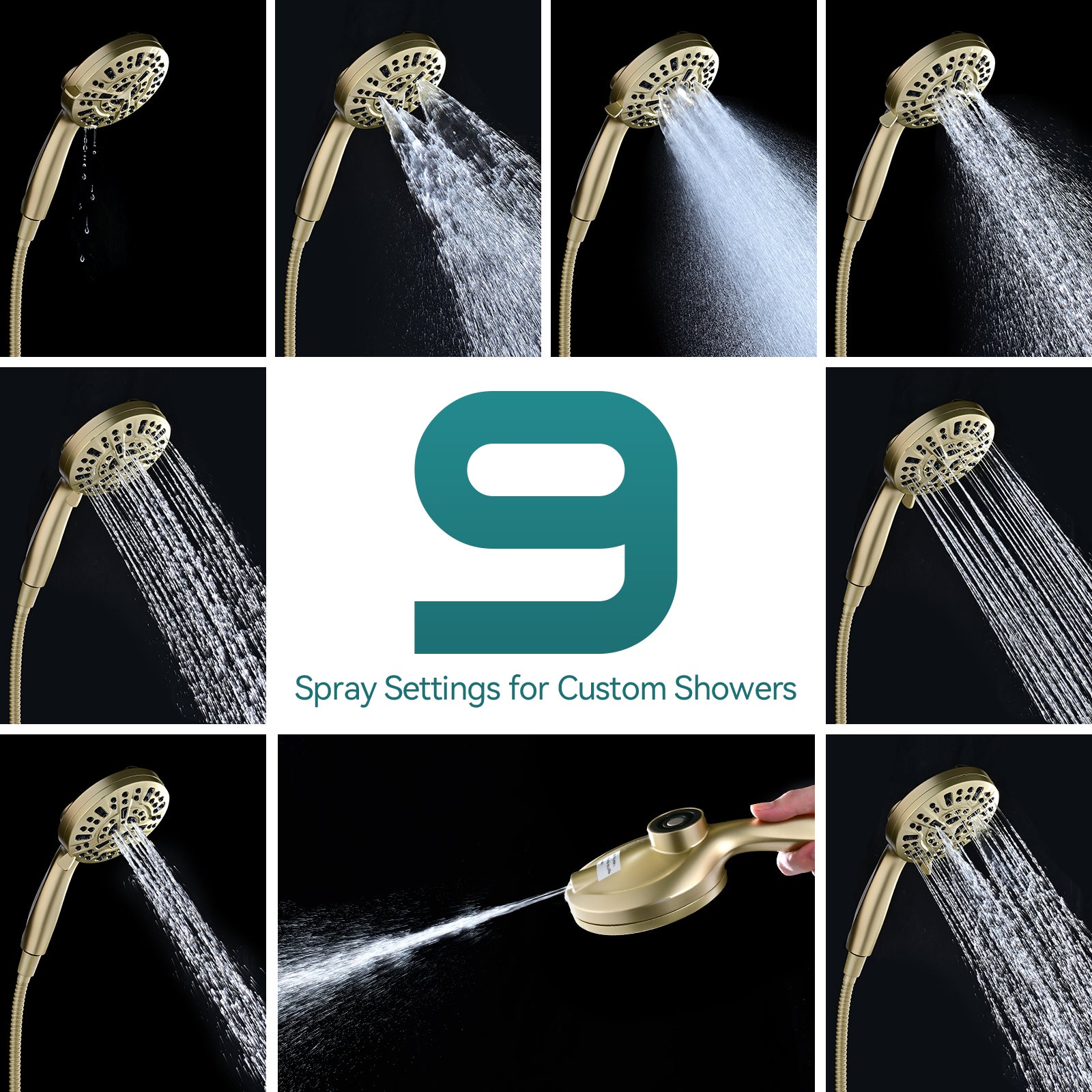 - Shower at Your Leisure – hand held shower head has 9 spray settings which included normal 8 showering modes, power jet and wide fan for bathroom cleansing or pet washing